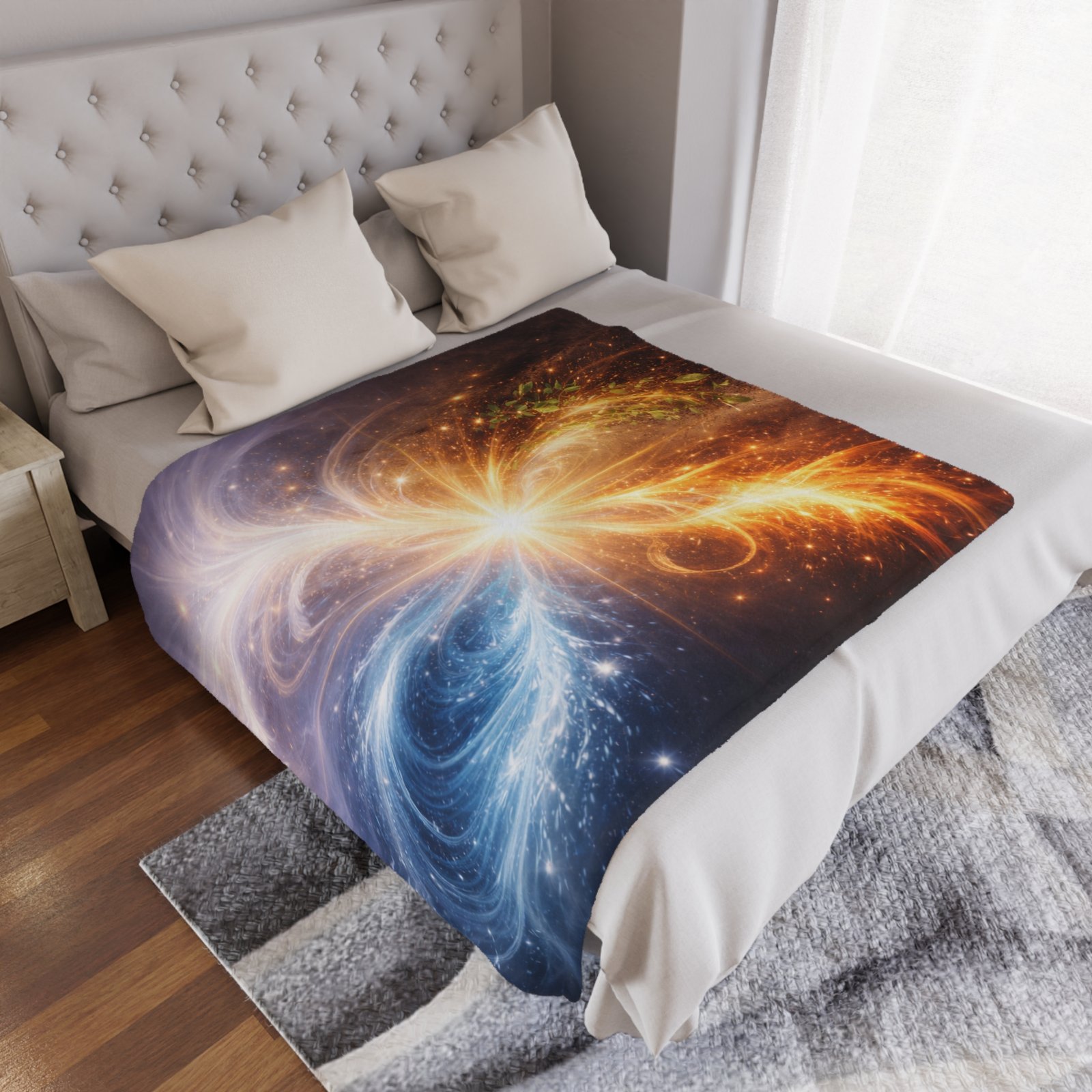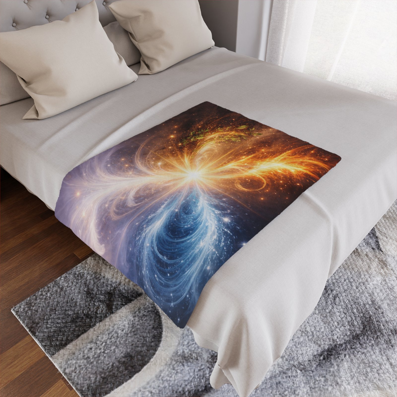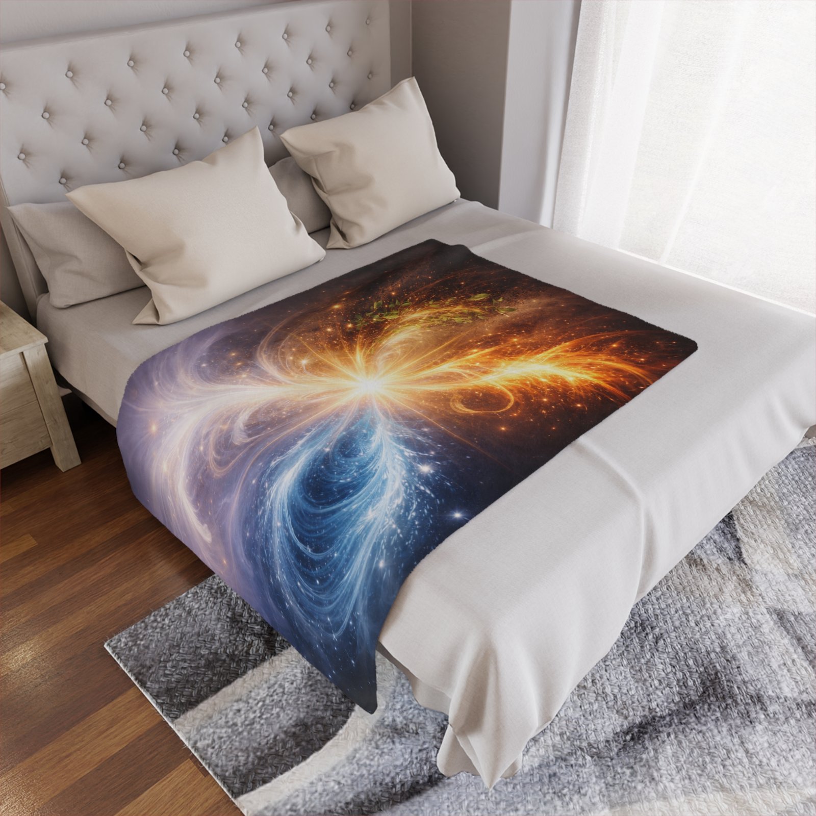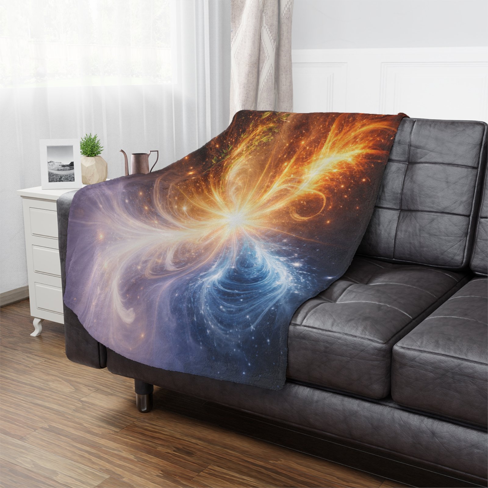 As part of the Celestial Balance Series, this design reflects the universe’s quiet intelligence: a reminder that balance is not the absence of movement, but the graceful alignment of energies. It brings a sense of grounded wonder and refined calm into the space it inhabits.
